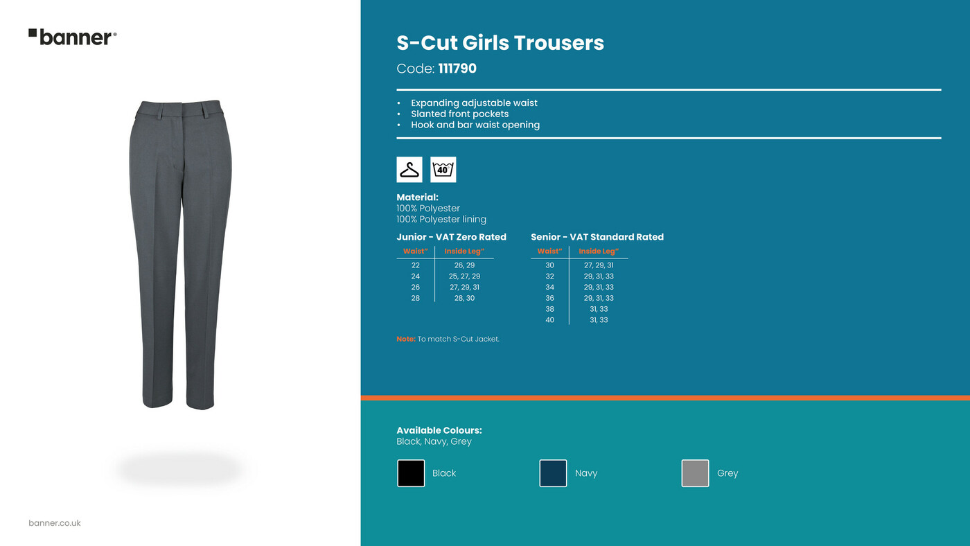 Banner S-Cut Girls Trousers - Senior 111790 (111790)